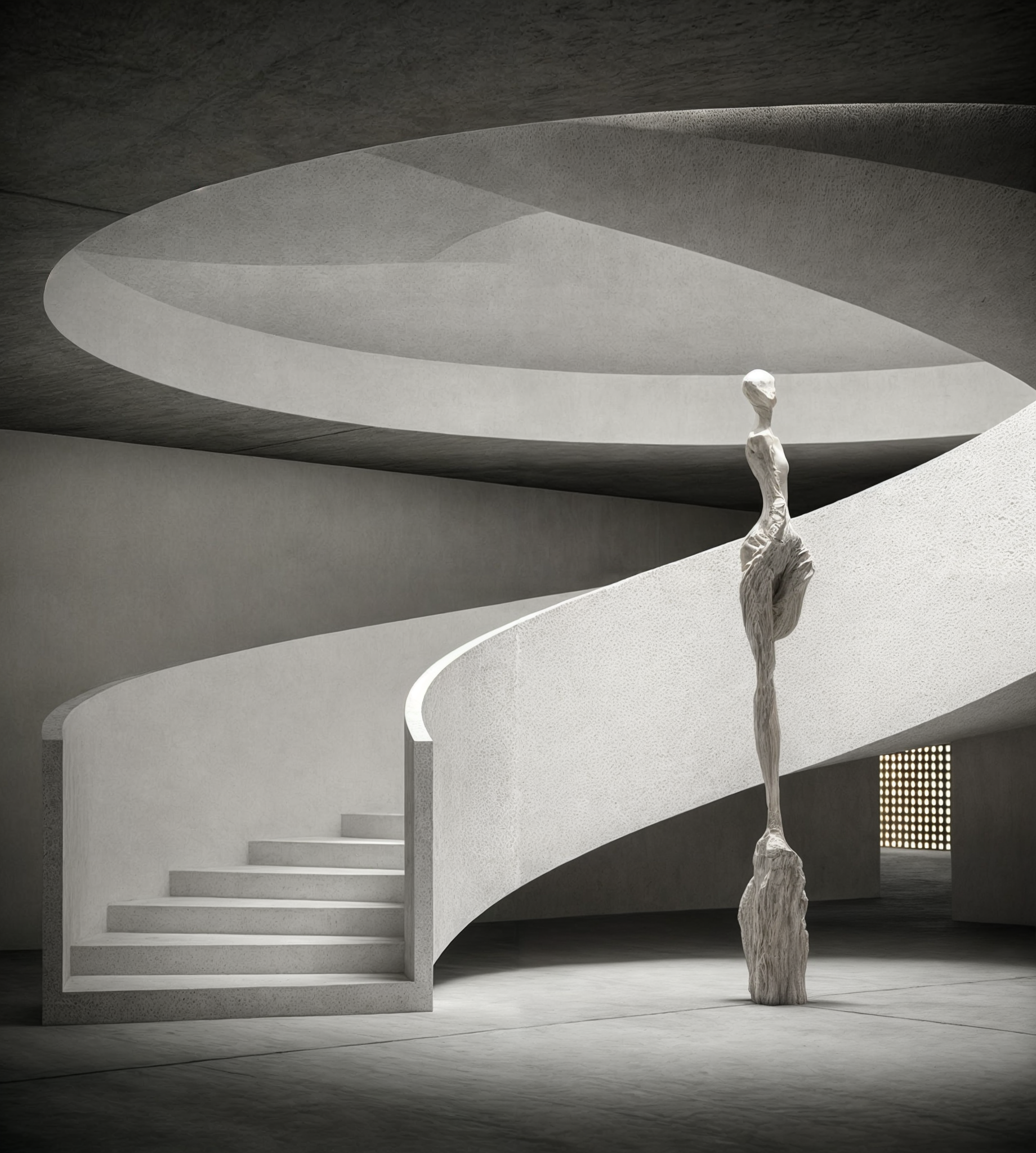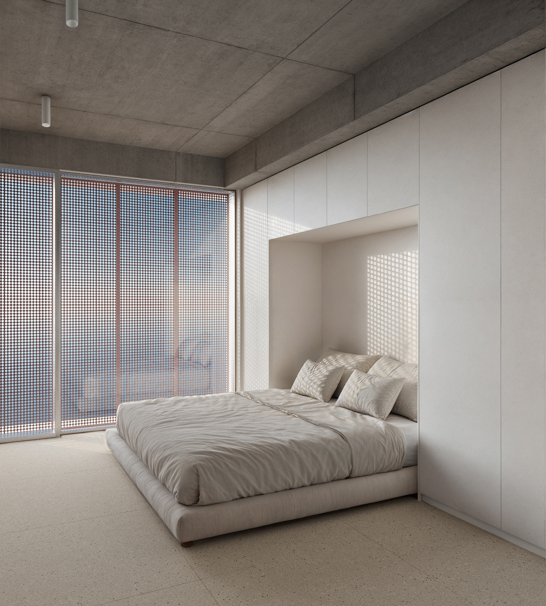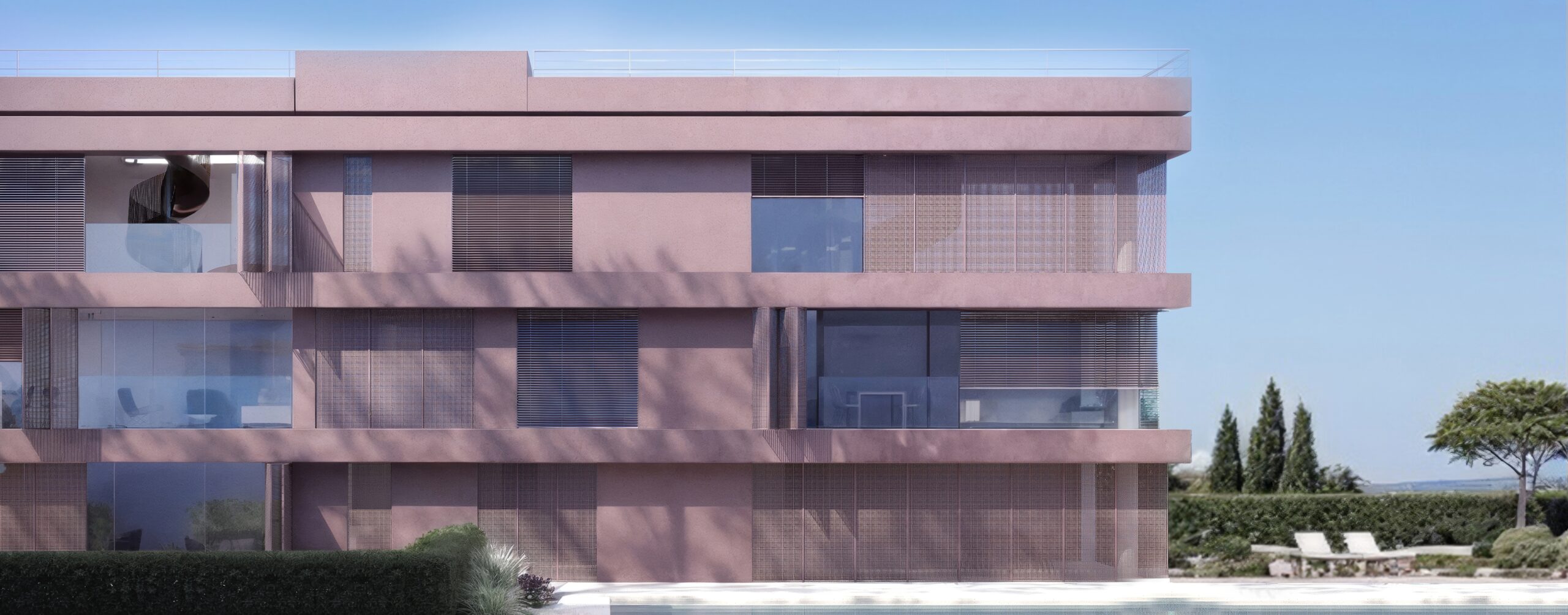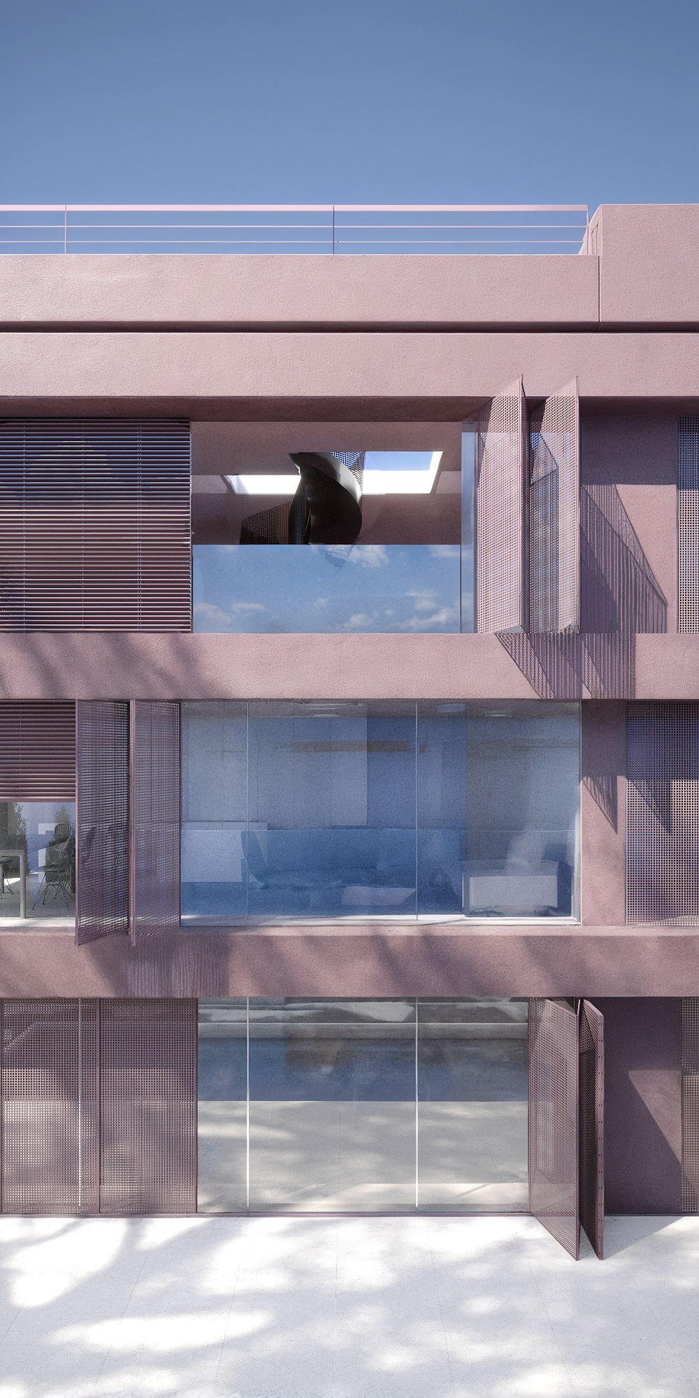 As in many of our projects, we have looked to connect our designs with other artistic disciplines. In this case, in addition to a sculpture placed on the ground floor of the atria, we have chosen a pink hue for the external concrete façades as a hint to the work of Christo in several of their sea/land projects.